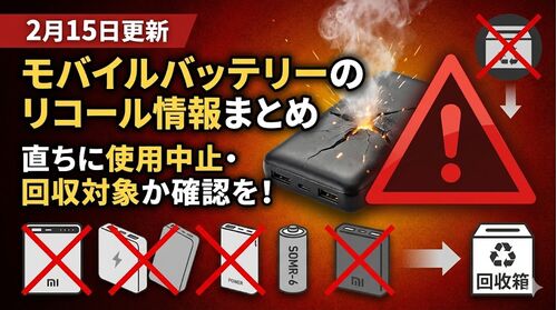 追記:11月12日、Anker PowerCore 10000「A1263」、住本製作所 モバイルバッテリー「YZLCC100P-10RD」を追加しました。9月24日、Xiaomi 33W Power Bank 20000mAh(Integrated Cable)を追加しました。---8月28日、新幹線でモバイルバッテリーの発煙事故が発…
