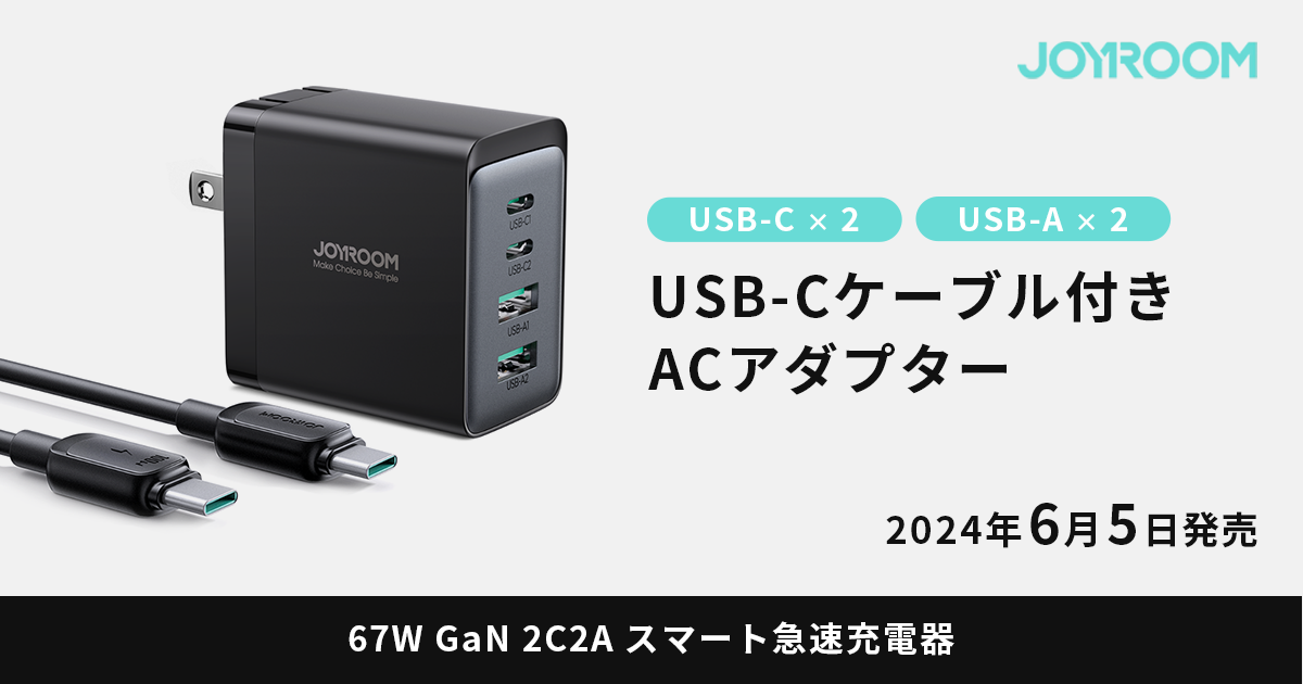 2024.06.03 テックウインド、JOYROOMからGaN採用のPD対応急速充電ACアダプターとケーブルセットの製品をラインアップ追加