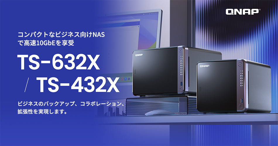 高いアクセス性能と充実した機能を特長とするQNAP製NASシリーズから、AnnapurnaLabs Alpine AL524 2.0GHz 4コアプロセッサーを搭載し、LinuxベースのQTS OSをサポートするSMB向けタワー型NAS TS-432XとTS-632Xの取り扱いを本日から開始します。