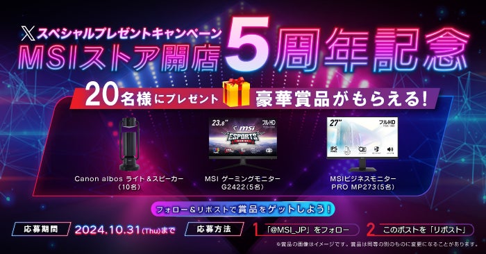 2024年9月5日 MSIストア開店5周年記念プレセントキャンペーン開催!!