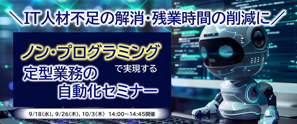 2024年9月5日 NEC、中小企業向けに『ノン・プログラミングで実現する定型業務の自動化セミナー』を開催(9/18・9/26・10/3 Webセミナー)